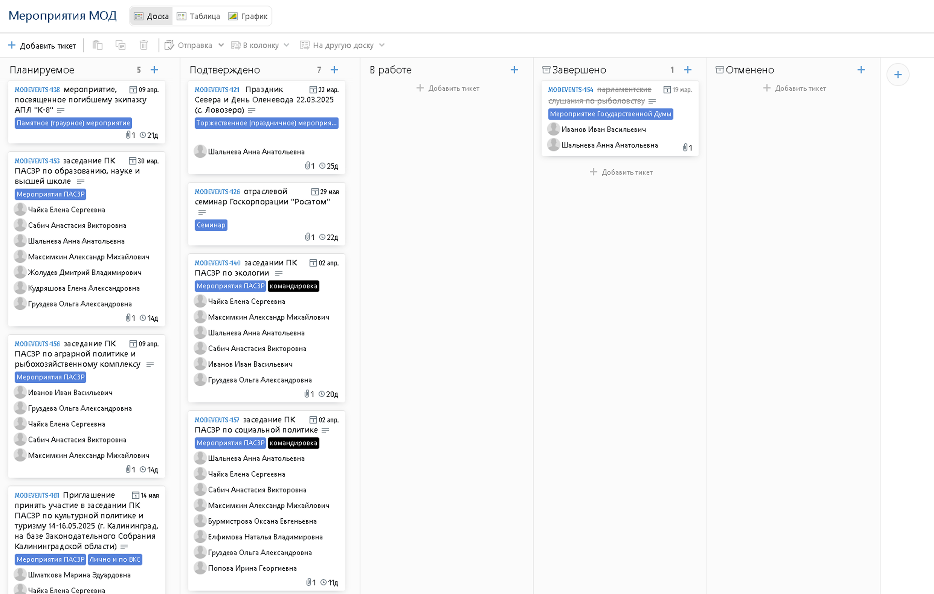В Мурманской областной Думе проходят мероприятия разного типа: отраслевые праздники, семинары, обучения, заседания и слушания. При помощи «Agile-досок» удалось структурировать общий поток информации: