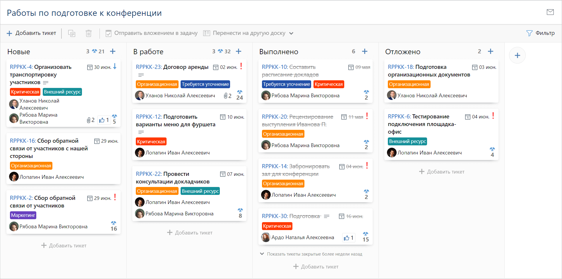 Пример дорожной карты подготовки конференции в виде канбан-доски