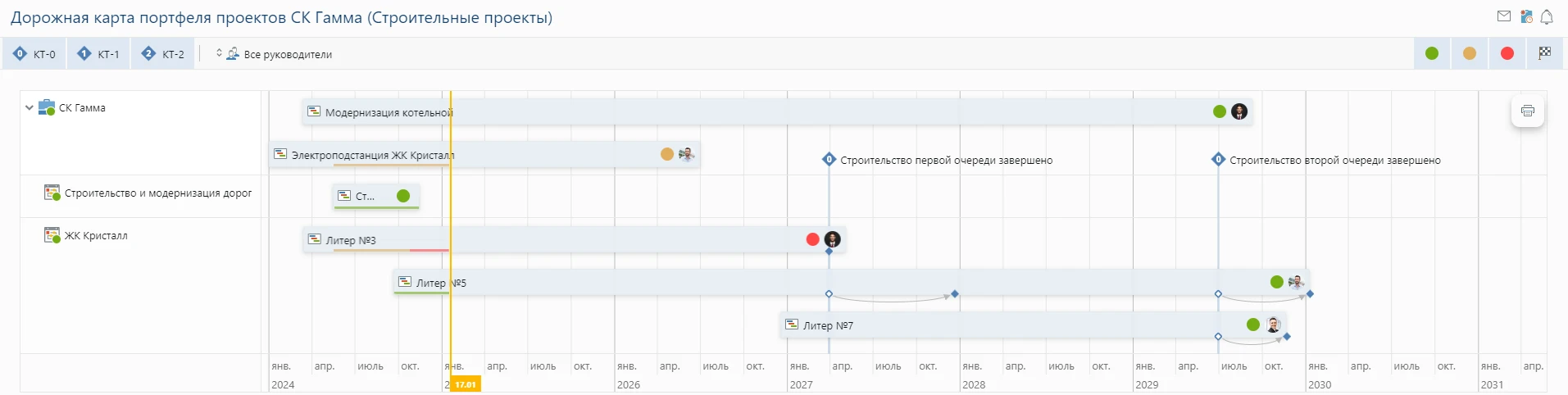 Чтобы верхнеуровнево отслеживать всю картину по проектам, их можно объединять в портфели и программы. Первый инструмент помогает достичь стратегических целей компании. Проекты в нем необязательно должны быть взаимосвязаны, в отличие от программ, куда входят проекты с общими бюджетом и ресурсами. Так проще распределять ответственных, устанавливать приоритеты, фиксировать и контролировать ожидаемые результаты.