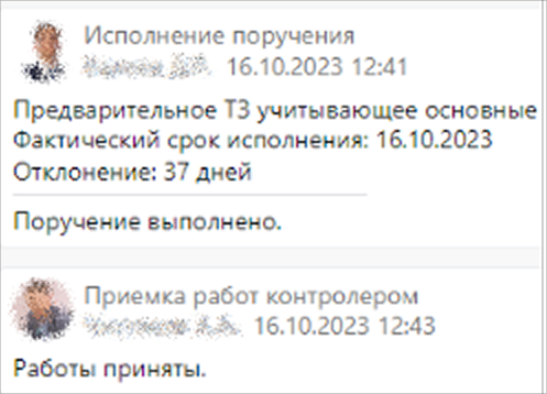 Исполнитель выполняет поручение, где отмечает фактическую дату завершения. Контролер оценивает своевременность выполнения работ и исполнительскую дисциплину.