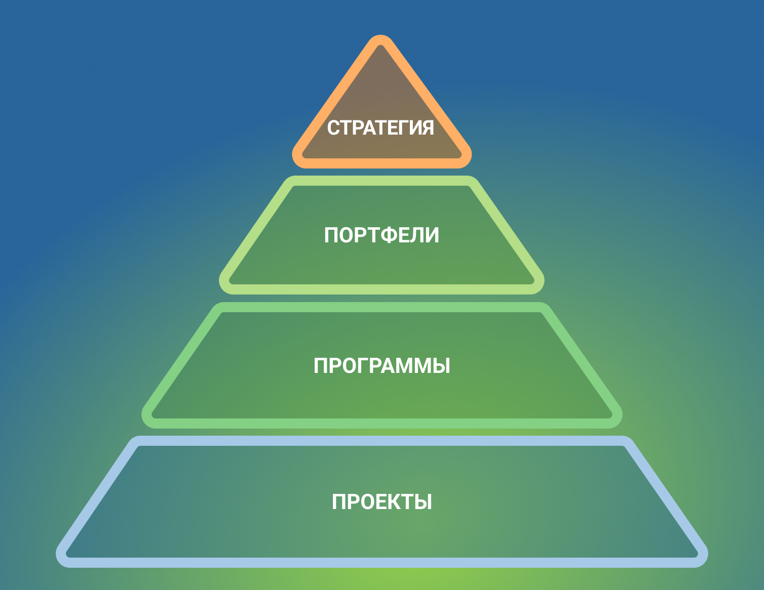 В программу собирают проекты, связанные общей целью или бизнес-ценностью и реализуемые в условиях общих ограничений. Например: «Программа развития транспортной логистики», «Программа импортозамещения программного обеспечения».