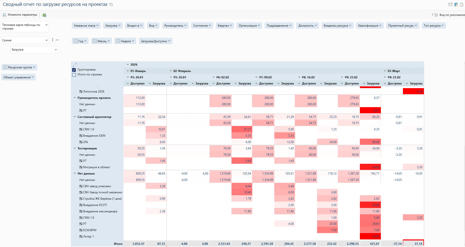Для балансировки можно использовать сводные отчеты по загрузке ресурсов и движению денежных средств в портфеле.