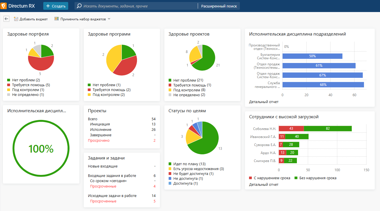 Один из примеров профессиональных систем — Directum Projects, в состав которой входит решение «Портфели и программы». Компании могут: