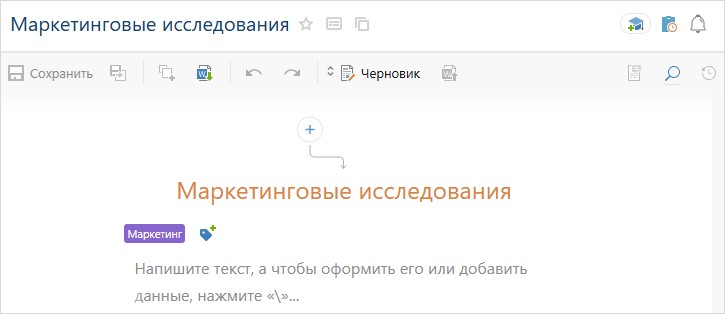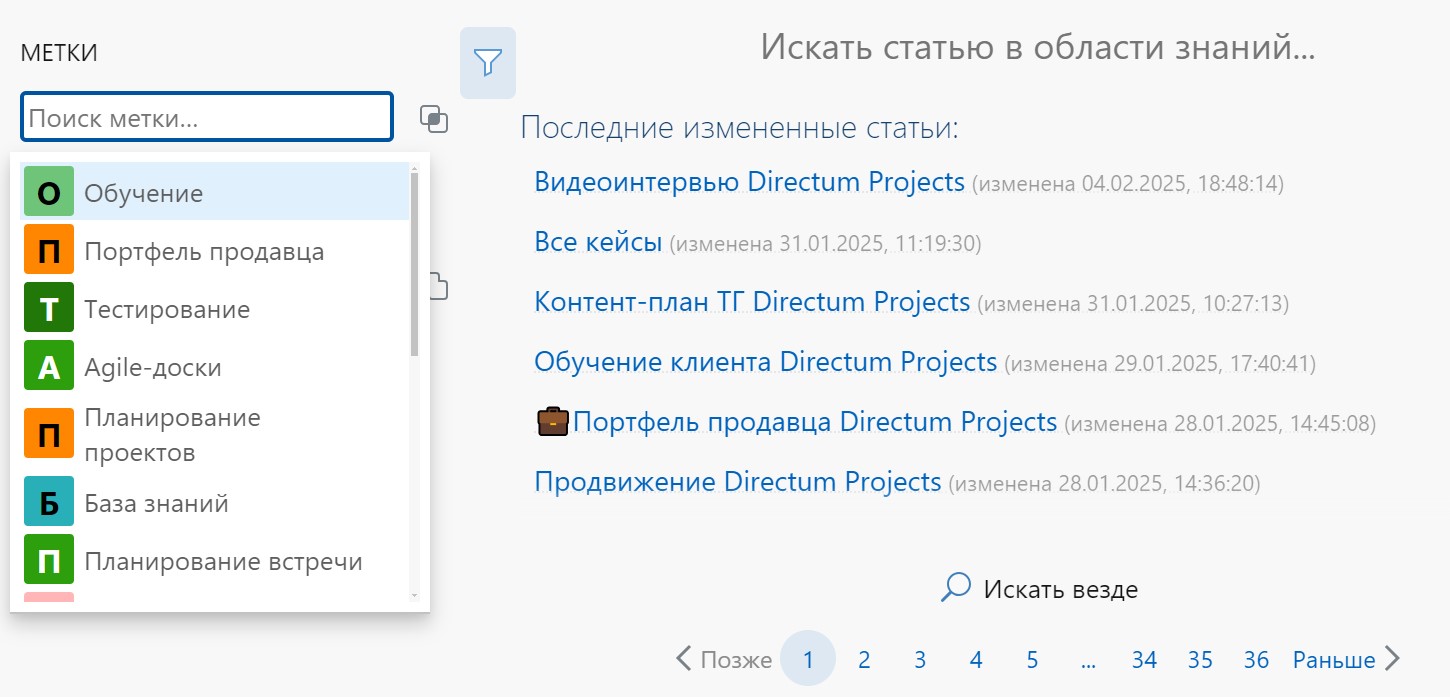 Быстро найти статьи «Базы знаний» по нужной тематике участники команды смогут при помощи меток — например, «Маркетинг», «Разработка», «Версия 3.2.».
